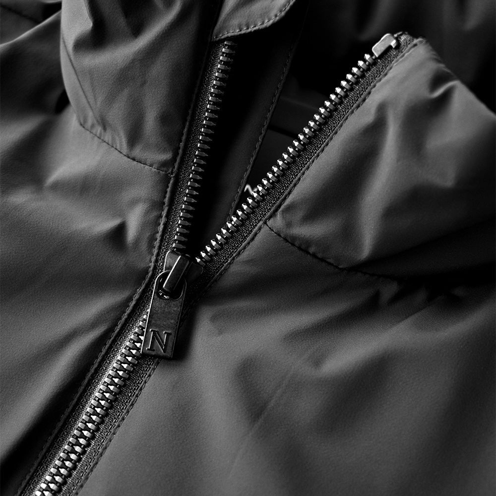 La sua elegante finitura opaca e la silhouette snella la rendono una giacca essenziale per la mezza stagione, che unisce funzionalità e moda. La versione maschile presenta un taglio classico, zip principale visibile e polsini e orlo elasticizzati comodi. La versione femminile è priva di bordi a coste, ma con una pattina antivento che copre la zip principale per un’espressione più femminile.