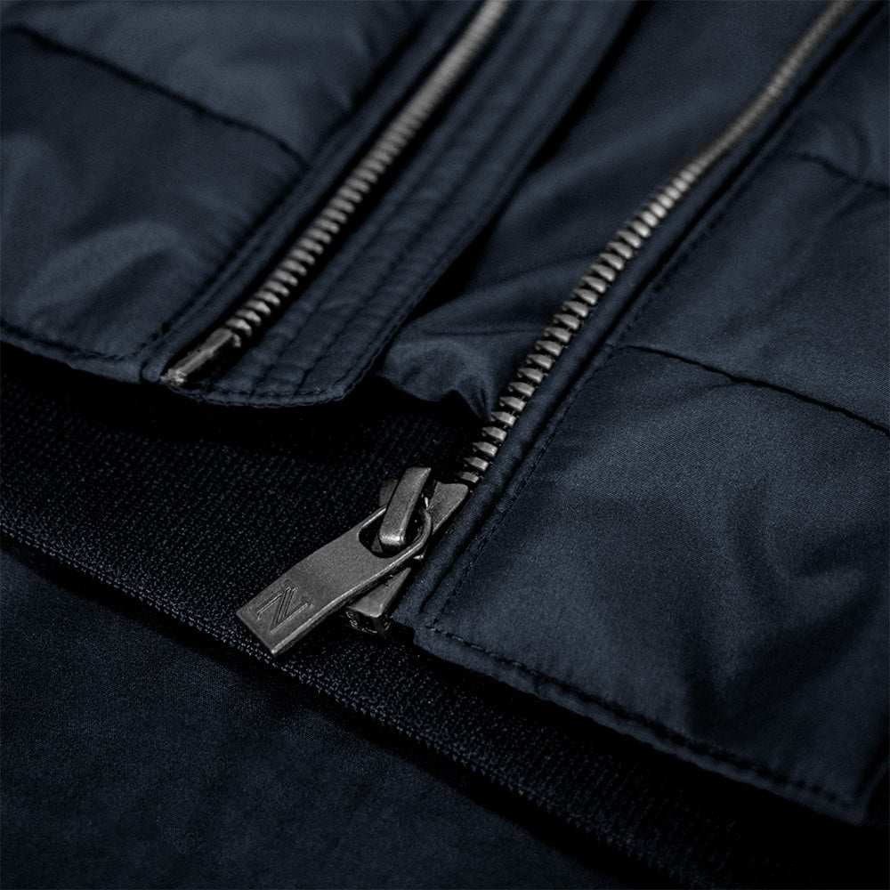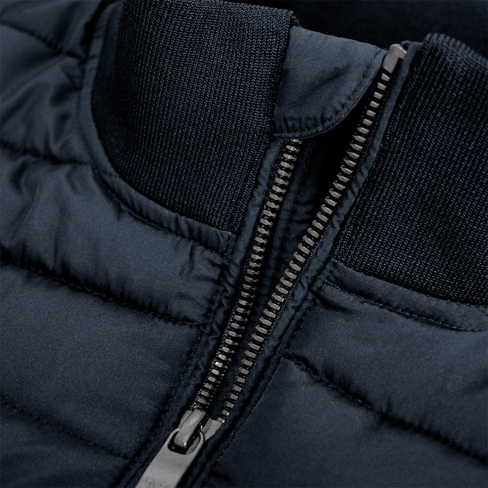 Presenta un retro in fleece bonded lavorato a maglia liscia, affiancato da pannelli imbottiti posizionati strategicamente sul davanti realizzati in poliestere riciclato, che garantiscono il calore essenziale esattamente dove serve di più.